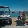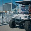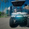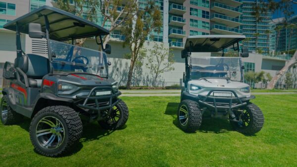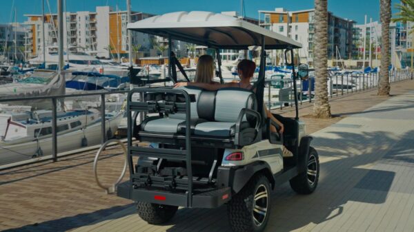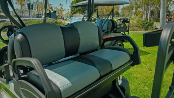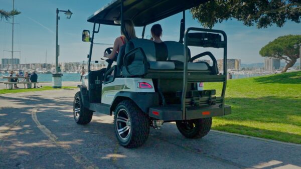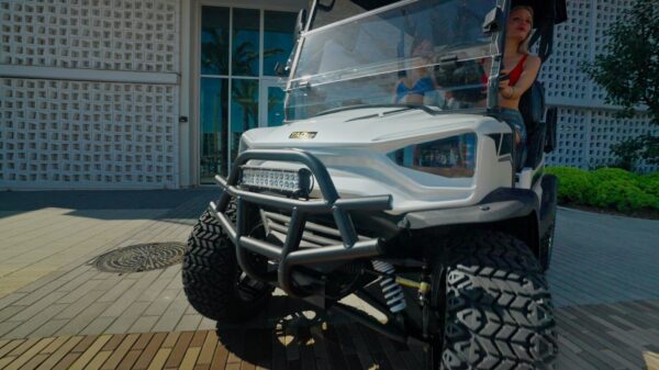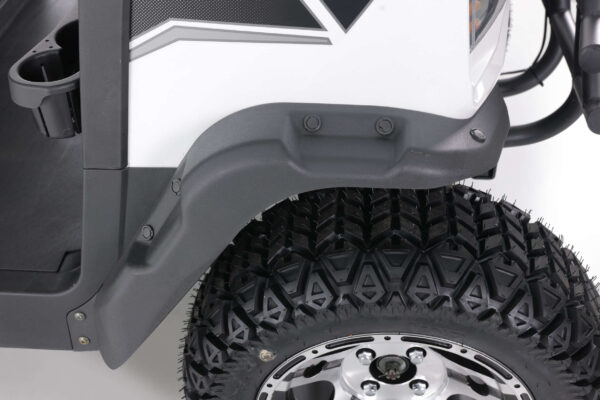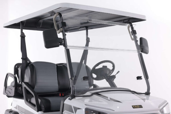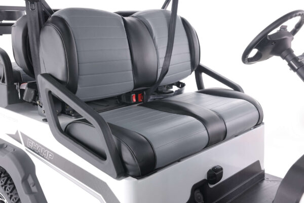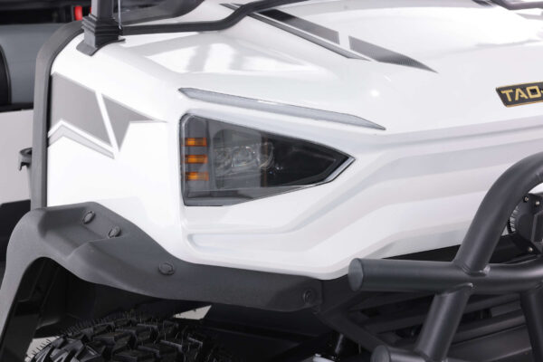 You asked. We listened. Tao Motor now offers a completely new riding experience for enjoying the great outdoors. Introducing the Champ Golf Cart! All new for 2023, the Champ is the first of its kind for the Tao Motor brand. Whether it is family night or date night, the Champ allows for easy riding with plenty of features and storage to accommodate everyone. From the front to the back, no detail was overlooked. No matter the weather, the Champ can be enjoyed rain or shine. With a full-length roof and foldable windshield, you can take cover from the rain or enjoy the summer breeze. Exceeding in comfort and safety, the Champ provides each passenger with premium seating, safety belts, and grab bars. Only two of you along for the ride? The rear-facing seats easily transform into a convenient flip deck so you never have to leave anything behind. Not only for storage, the compartment under the rear seats can also be utilized as a cooler, complete with a drain plug for easy cleanup. Fully electric with a 48V 5KW motor, the Champ boasts plenty of power to keep the fun going for hours, even after the sun goes down. LED Turn signals, headlights, and tail lights allow for plenty of visibility, and the colorful display screen lets you know when it’s time to call it a day. Innovative of its kind, the Champ comes stocked with rear drum brakes, so you’ve got plenty of stopping power exactly when you need it. Available in gray or white with sleek decals, the Champ is ready to take you on a brand-new adventure.