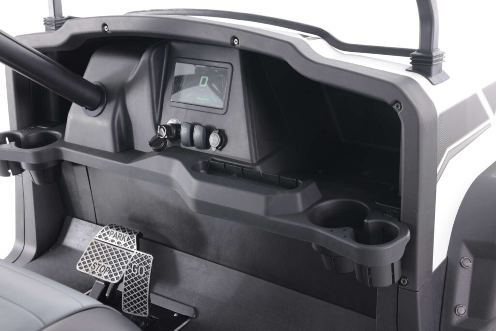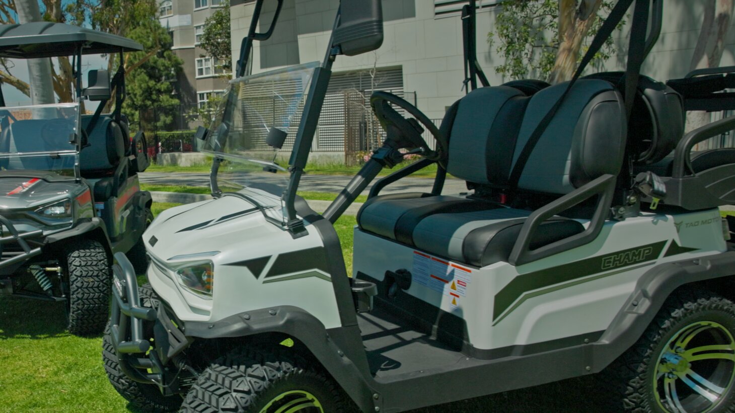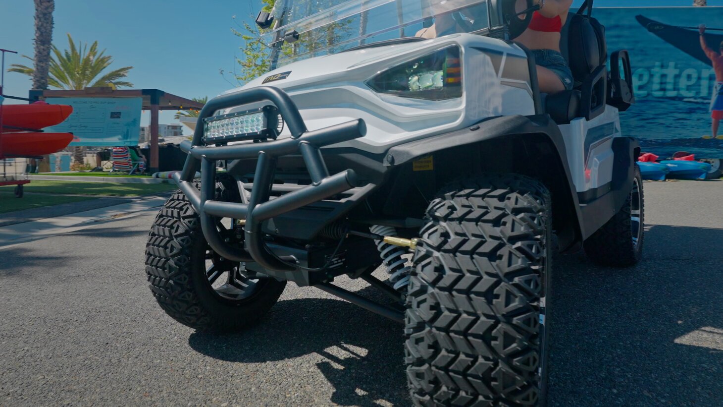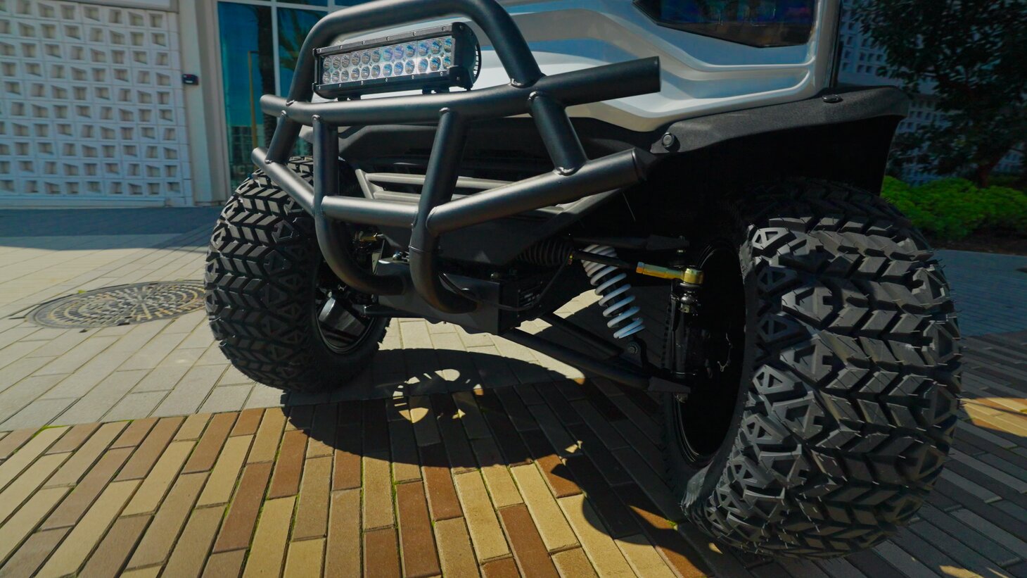 You asked. We listened. Tao Motor now offers a completely new riding experience for enjoying the great outdoors. Introducing the Champ Golf Cart! All new for 2023, the Champ is the first of its kind for the Tao Motor brand. Whether it is family night or date night, the Champ allows for easy riding with plenty of features and storage to accommodate everyone. From the front to the back, no detail was overlooked. No matter the weather, the Champ can be enjoyed rain or shine. With a full-length roof and foldable windshield, you can take cover from the rain or enjoy the summer breeze. Exceeding in comfort and safety, the Champ provides each passenger with premium seating, safety belts, and grab bars. Only two of you along for the ride? The rear-facing seats easily transform into a convenient flip deck so you never have to leave anything behind. Not only for storage, the compartment under the rear seats can also be utilized as a cooler, complete with a drain plug for easy cleanup. Fully electric with a 48V 5KW motor, the Champ boasts plenty of power to keep the fun going for hours, even after the sun goes down. LED Turn signals, headlights, and tail lights allow for plenty of visibility, and the colorful display screen lets you know when it’s time to call it a day. Innovative of its kind, the Champ comes stocked with rear drum brakes, so you’ve got plenty of stopping power exactly when you need it. Available in gray or white with sleek decals, the Champ is ready to take you on a brand-new adventure.