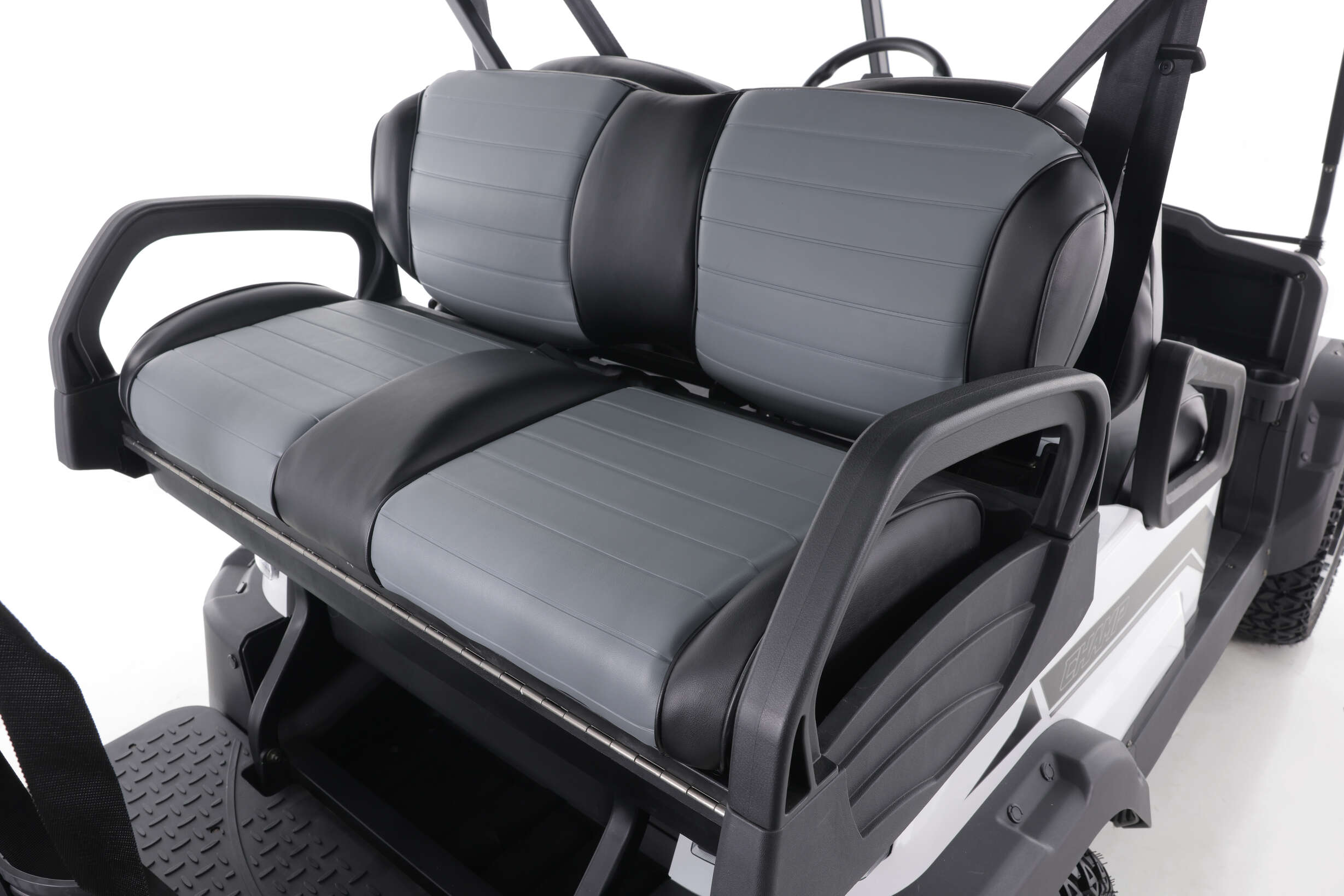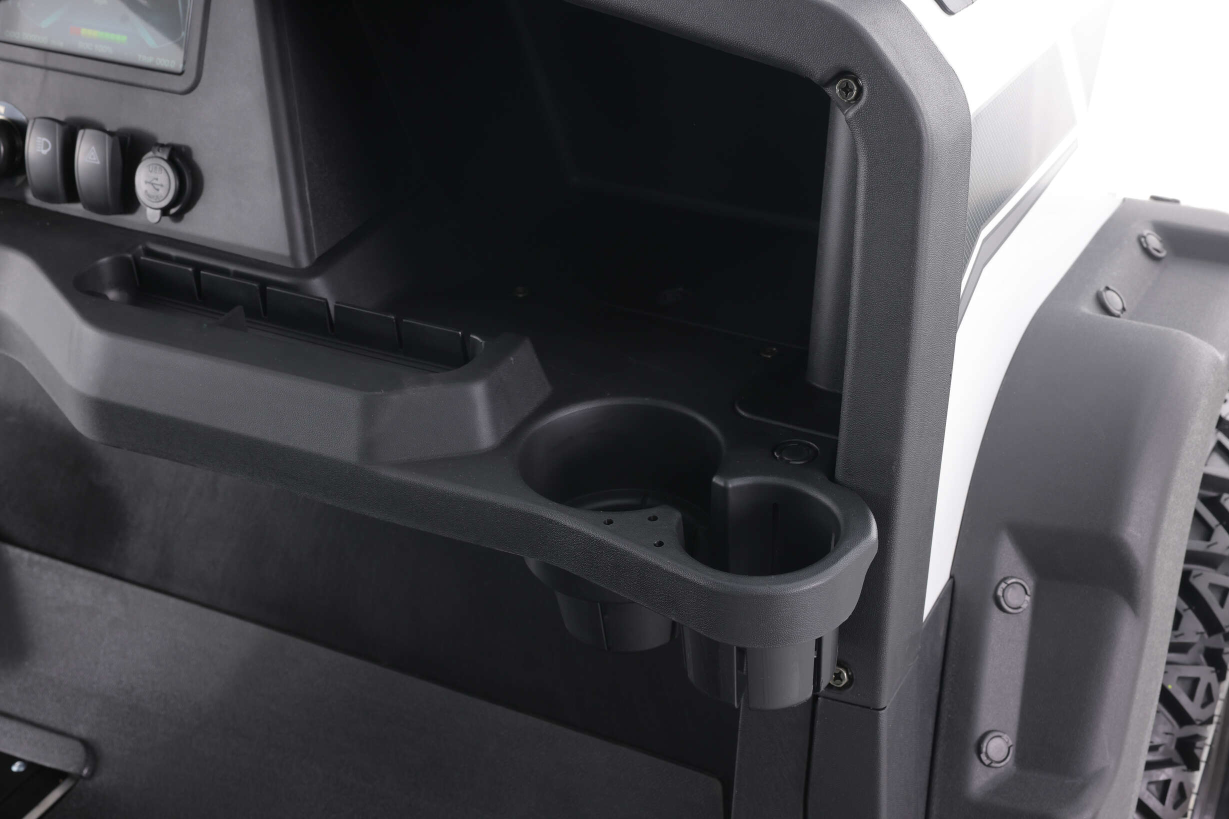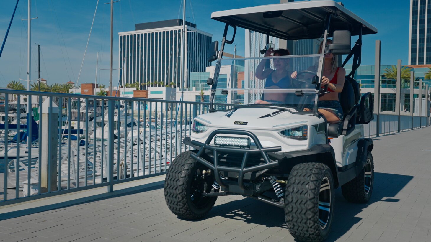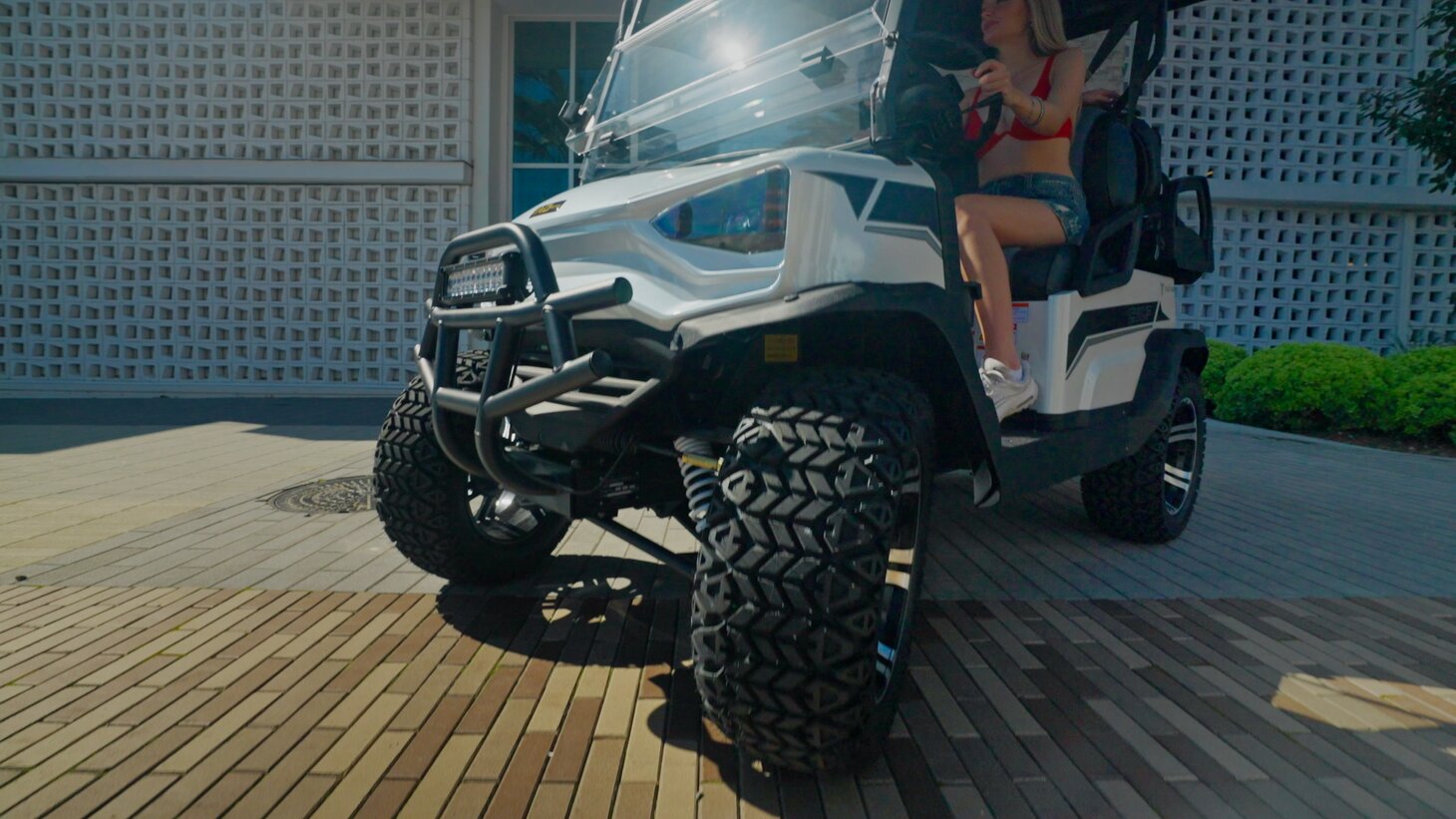 You asked. We listened. Tao Motor now offers a completely new riding experience for enjoying the great outdoors. Introducing the Champ Golf Cart! All new for 2023, the Champ is the first of its kind for the Tao Motor brand. Whether it is family night or date night, the Champ allows for easy riding with plenty of features and storage to accommodate everyone. From the front to the back, no detail was overlooked. No matter the weather, the Champ can be enjoyed rain or shine. With a full-length roof and foldable windshield, you can take cover from the rain or enjoy the summer breeze. Exceeding in comfort and safety, the Champ provides each passenger with premium seating, safety belts, and grab bars. Only two of you along for the ride? The rear-facing seats easily transform into a convenient flip deck so you never have to leave anything behind. Not only for storage, the compartment under the rear seats can also be utilized as a cooler, complete with a drain plug for easy cleanup. Fully electric with a 48V 5KW motor, the Champ boasts plenty of power to keep the fun going for hours, even after the sun goes down. LED Turn signals, headlights, and tail lights allow for plenty of visibility, and the colorful display screen lets you know when it’s time to call it a day. Innovative of its kind, the Champ comes stocked with rear drum brakes, so you’ve got plenty of stopping power exactly when you need it. Available in gray or white with sleek decals, the Champ is ready to take you on a brand-new adventure.