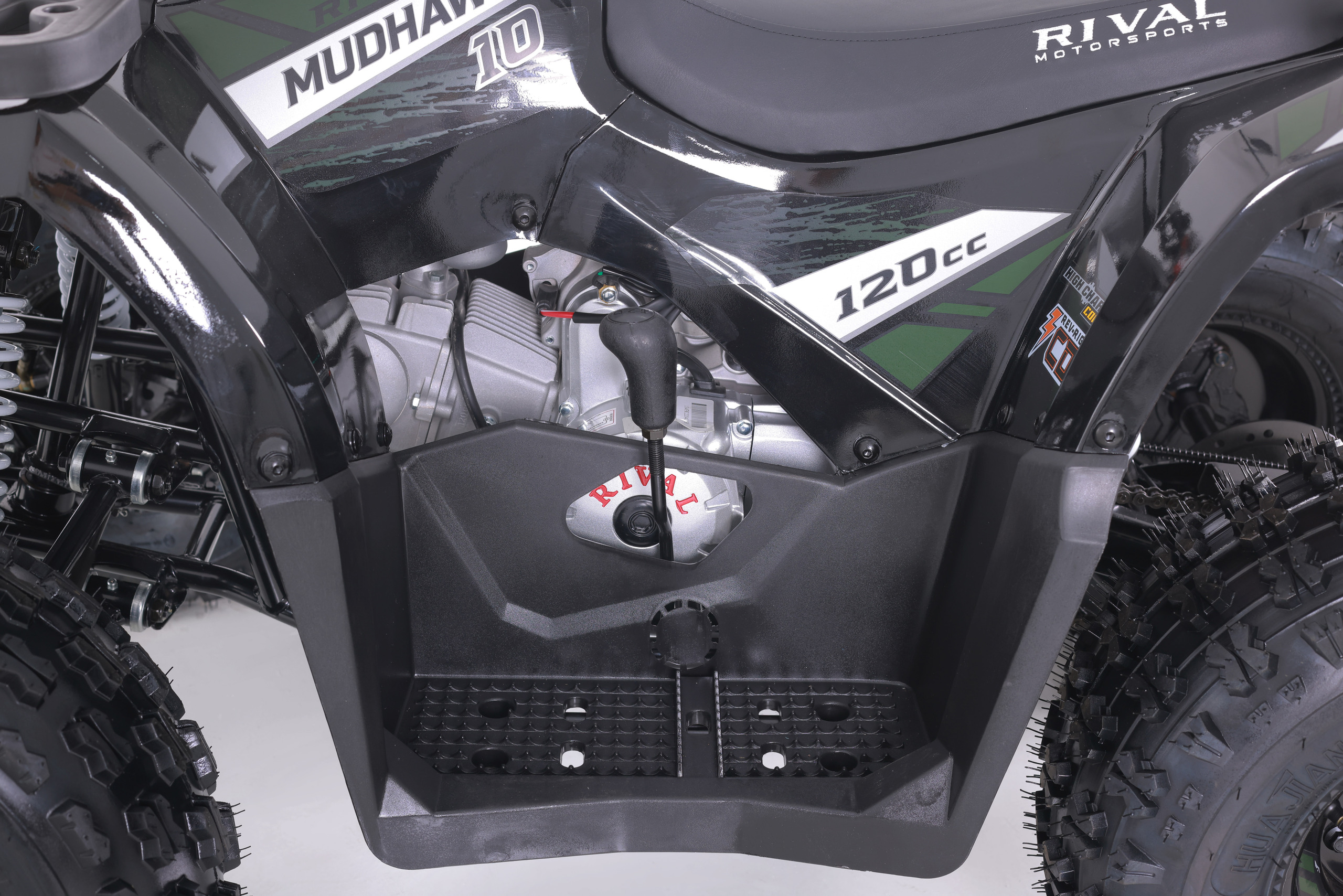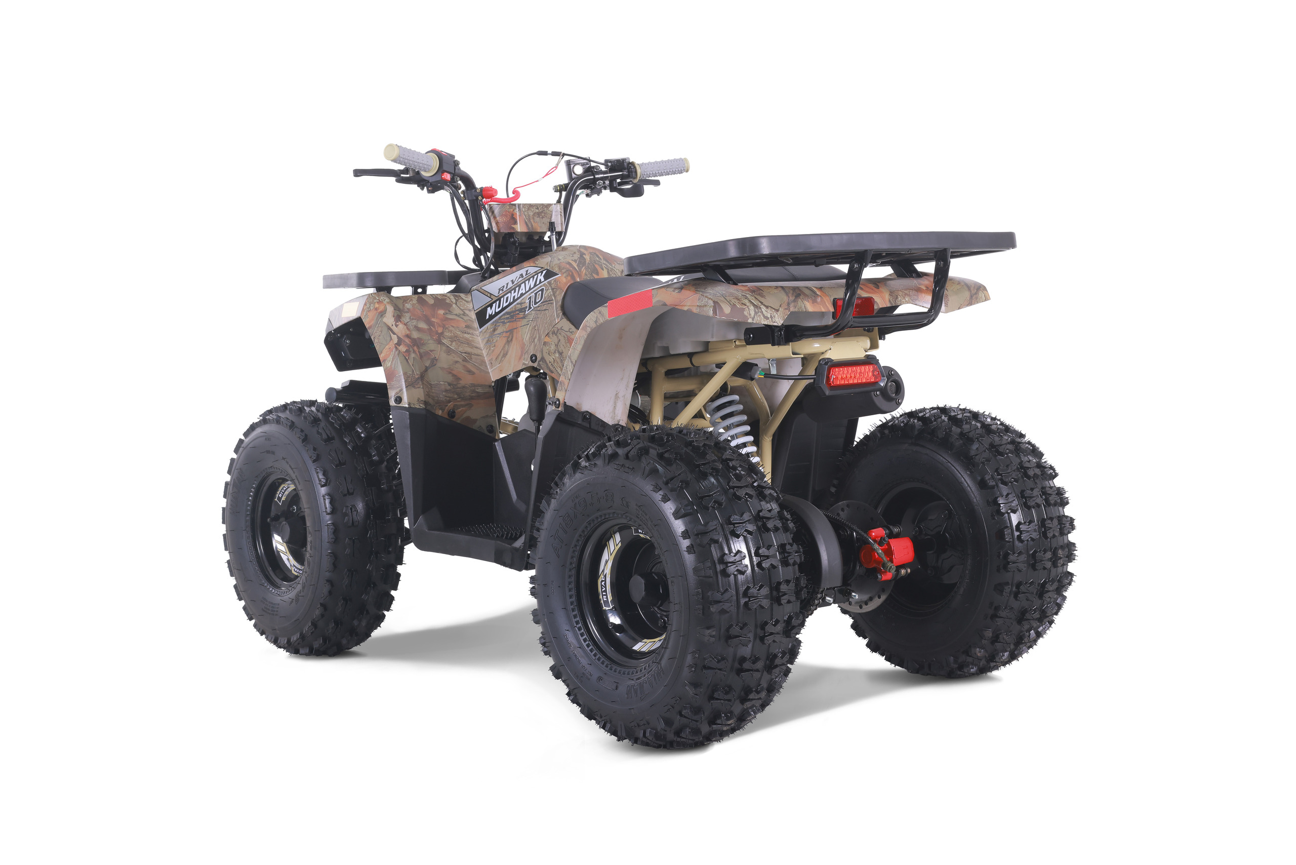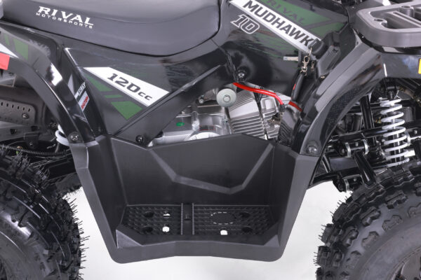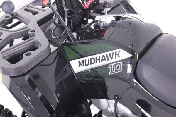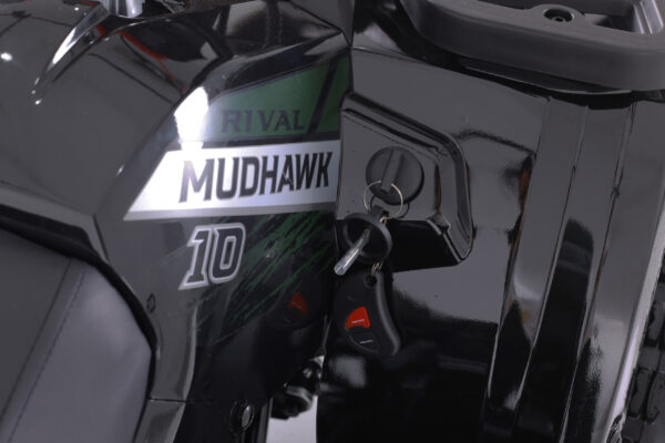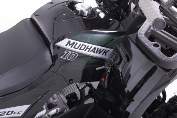 The Mudhawk 10 is back in action. While still fitted with our top notch safety features such as the throttle limiter and remote engine shut off, the Mudhawk 10 is sized for a more experienced youth rider aged 10 and up. Front and rear disk brakes provide consistent and easy stopping power, with brake levers designed specifically for smaller hands. The convenience of the electric start engine and automatic transmission will leave you plenty of time to load up the rear rack with all of your essentials before you hit the trails. From performance to aesthetics, it”s no wonder the Mudhawk 10 has bbecome one of our most popular and sought after off road vehicles.